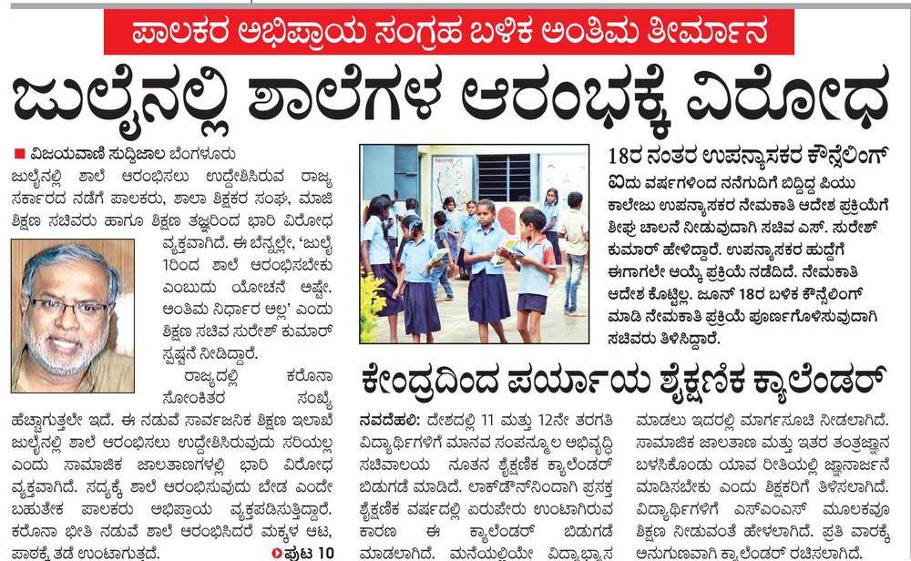 1. ಇಡಿ ಜಗತ್ತನ್ನೇ ನಡುಗಿಸಿದ ಕರೊನಾ ಇರುವಾ ಅದು ನಮ್ಮ ದೇಶದಲ್ಲಿ ನಿಯಂತ್ರಣ ಬರುತಿಲ್ಲಾ ದಿನದಿಂದ ದಿನಕ್ಕೆ ಹೆಚ್ಚಾಗುತಿದ್ದು ಹಿಂತ ಸಂದರ್ಭದಲ್ಲಿ ಶಾಲೆ ಪ್ರಾರಂಬಿಸಿದರೆ ಮಕ್ಕಳ ಜಿವಕ್ಕೆ ತೊಂದರೆ ಆಗಬಾರದು ಶಿಕ್ಷಣಕ್ಕಿಂತ ಜಿವ ಮುಕ್ಯ ಕರೊನಾ ನಿಯಂತ್ರಣ ಕ್ಕ ಬಂದಮೆಲೆನೆ ಪ್ರಾರಂಬಿಸಿದರೆ ಒಳ್ಳೆಯ ದು